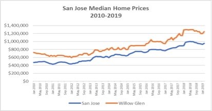 - In the Willow Glen neighborhood, prices have increased by 72% during that same time frame, slightly less than San Jose overall but impressive nonetheless